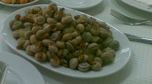 在希腊,蜗牛在克里特岛特别受欢迎,但在该国许多地方也被食用,甚至可以在超市里找到,有时活蜗牛被放在部分冷藏的蔬菜附近。在这方面,蜗牛是超市作为食品销售的少数活体生物之一。它们要么加醋煮熟食用,要么有时与番茄、土豆和南瓜一起活煮在砂锅中。