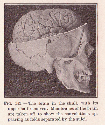 !['来自Alvin Davison 1908年出版的《人体与健康修订版》一书。这本书的版权是1908年Alvin Davison和1924年American Book Company。版权从未续期,因此应该属于公共领域。' 作者Sue Clark (Flickr: 第215页 头骨和大脑) [公共领域], 通过维基共享资源](../wp-content/uploads/2014/10/405px-Page_215_Skull_and_Brain1.jpg)