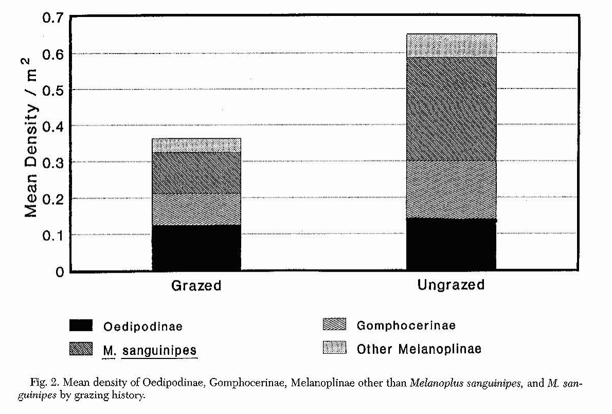 未放牧地点的平均蝗虫密度高于放牧地点。[...]