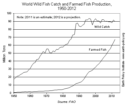 从宏观角度评估捕鱼总影响的一个视角是以下图表(由地球政策研究所编制)。