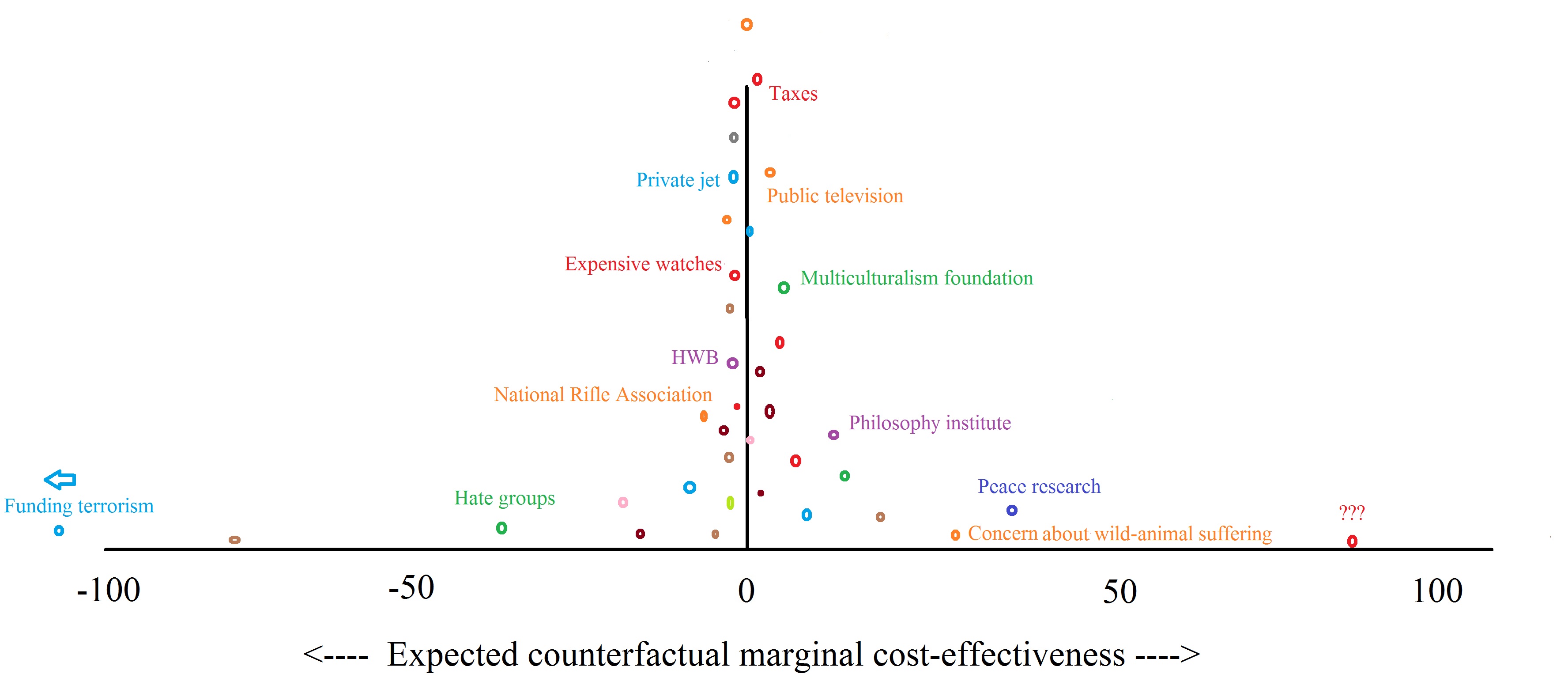 烧钱应该是目前进行的货币支出分布的加权中心,因为通货紧缩按比例帮助了所有其他用途的资金。还要注意,慈善机构的效益并不总是在彼此几百倍的范围内。极少数慈善机构位于尾部,至少在短时期内,就像极少数投资确实可以暂时大大超过市场表现一样。或者,如果我们将某个典型的慈善机构X与恰好非常接近零点的某个慈善机构Y进行比较,X对Y的成本效益比确实会很大。但这是一个例外,这不是我说大多数慈善机构之间的差异不超过几十到几百倍时的意思。